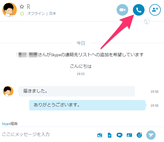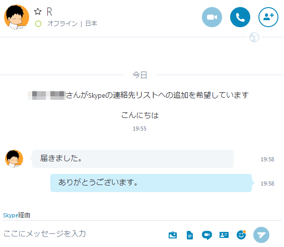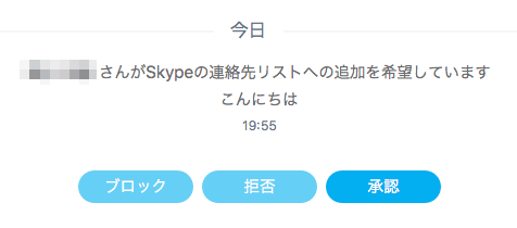メッセージが送信されると僕のSkypeに届きます。あとはメッセージを受け取った側が承認することで、晴れて友達追加となります。