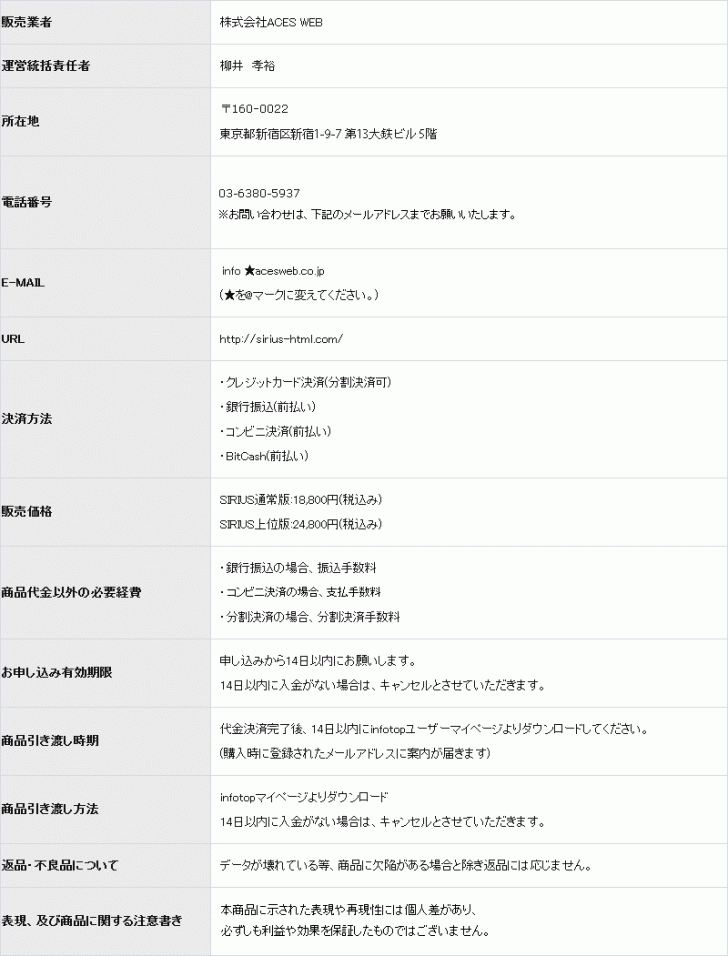 『SIRIUS』販売業者:株式会社ACES WEB のこれまで