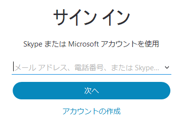 ログインページが開きますので、先程Skypeで登録したメールアドレスとパスワードを入力しログインしまう。