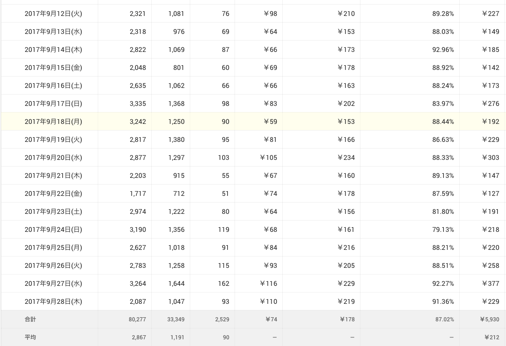 だいたい1〜5個投稿していました。サボる日も多かったので、1日何もしなかった日もありますが、そんな日も、アドセンス収入で200円ほどは入っていました。