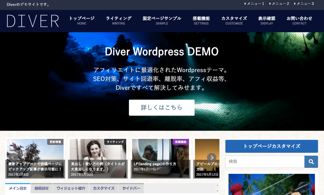 僕のブログは情報発信を主としていますので、上記のSANGOのようなシンプルなレイアウトよりも、少し情報量を多く表示させたかったため、しっくり来るDIVERを選びました。