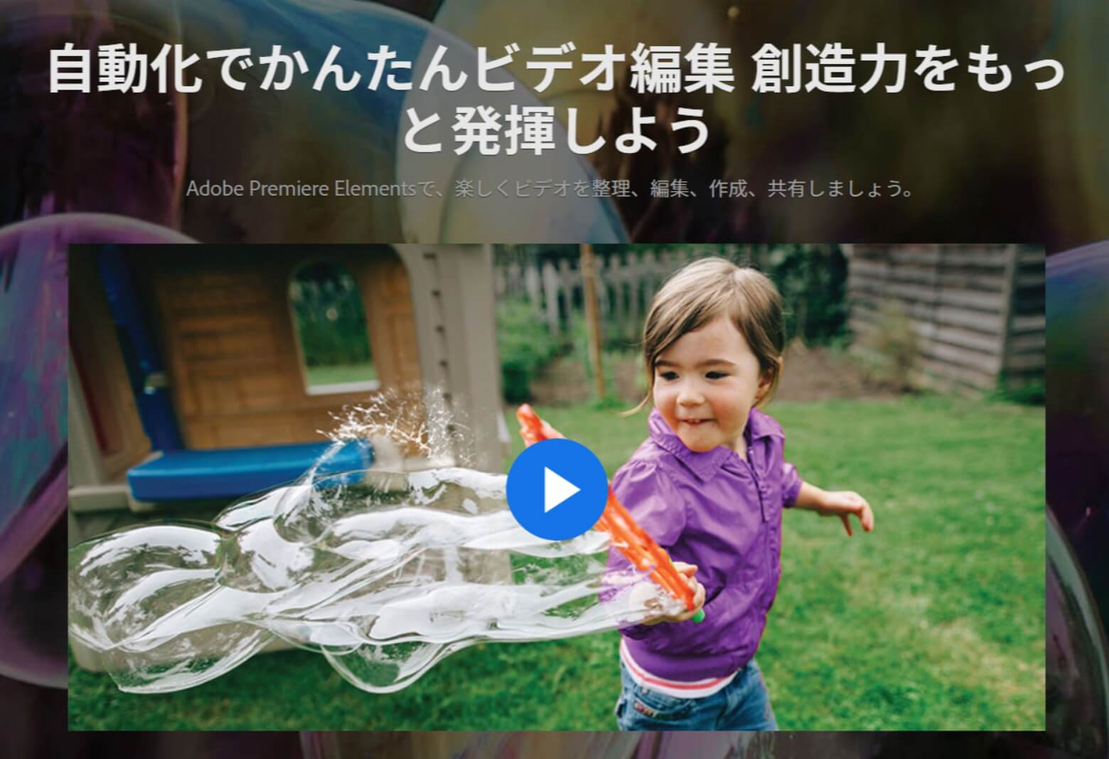 | 主な機能 | 4K動画編集/モーショントラッキング/サウンドエフェクト/GIF/手ブレ自動補正/さらに詳しく→ https://www.adobe.com/jp/products/premiere-elements/buying-guide.html |